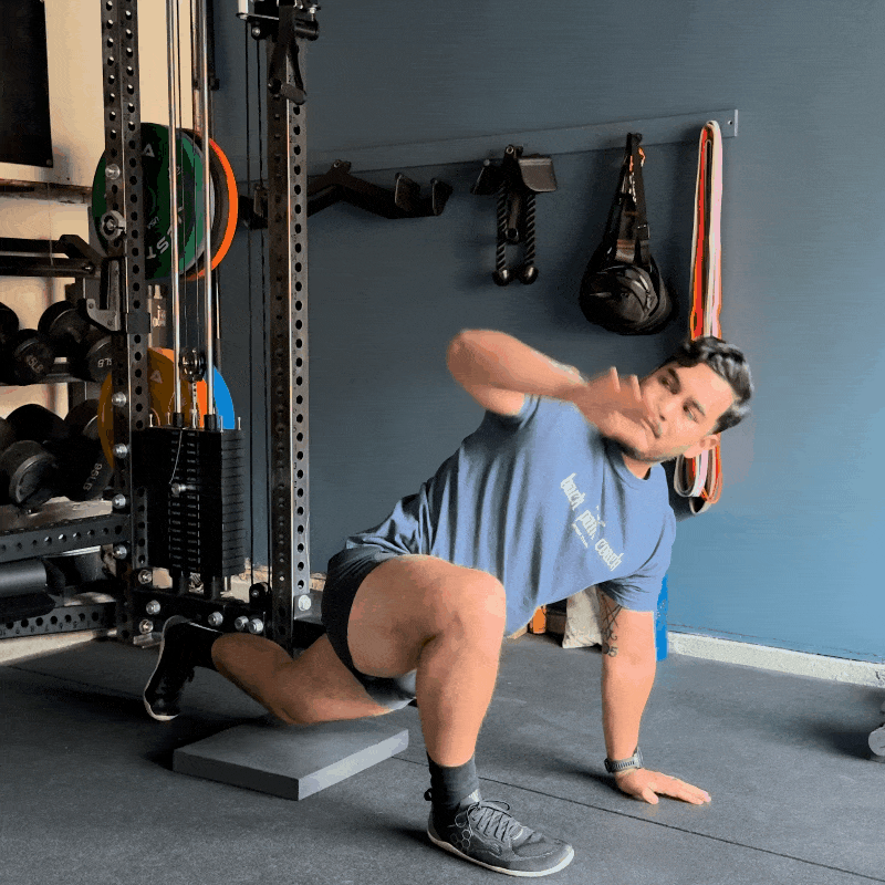 Start on all fours and exhale slowly as you start rounding your upper back trying to move vertebrae by vertebrae from your tailbone to your neck. Take a deep breath and now start arching your back once again focusing on each segment of your spine. This can seem like a very simple exercise but with proper focus and control it can help you unlock movement and control you didn't know you were capable of.