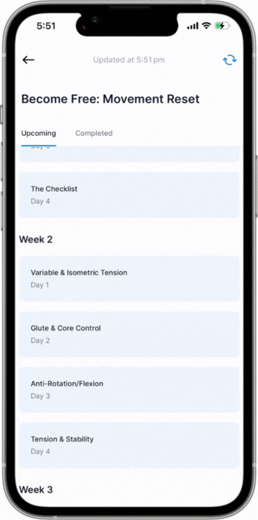 4 guided sessions per week with the ability to repeat any week until you feel confident to move forward and continue mastering your movement